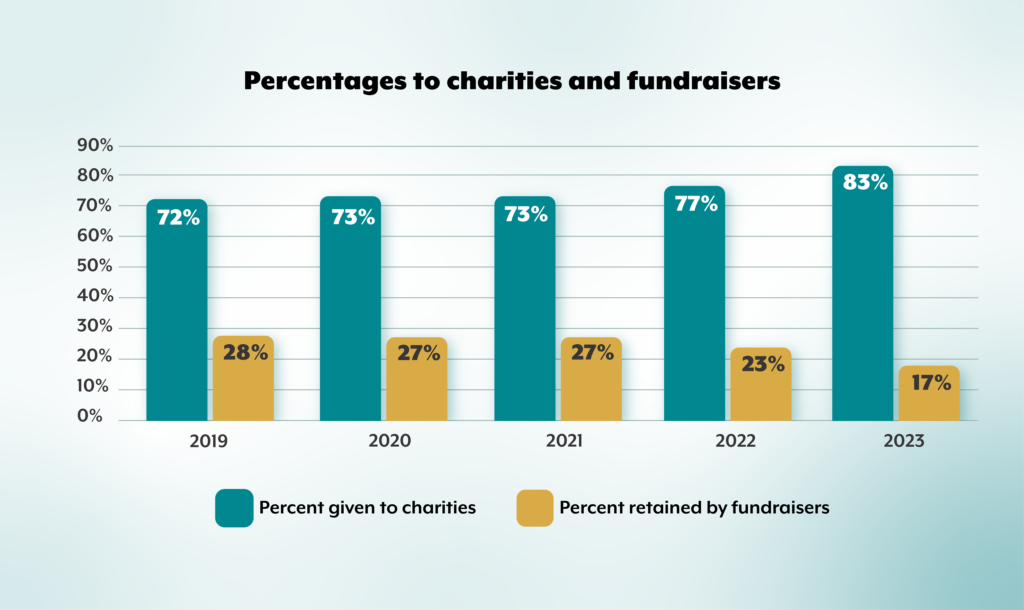 Many charities collaborate with professional fundraisers to tap into their expertise in donor outreach. While these partnerships can significantly boost fundraising efforts, they come with a cost. Professional fundraisers typically retain a percentage of the funds they help raise, and in some cases, their fees may consume a substantial portion of donations. This year’s report shows progress, with fundraisers retaining a smaller share of the total funds compared to previous years. However, transparency remains essential.